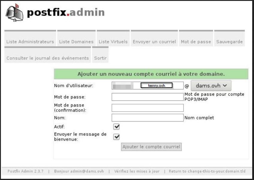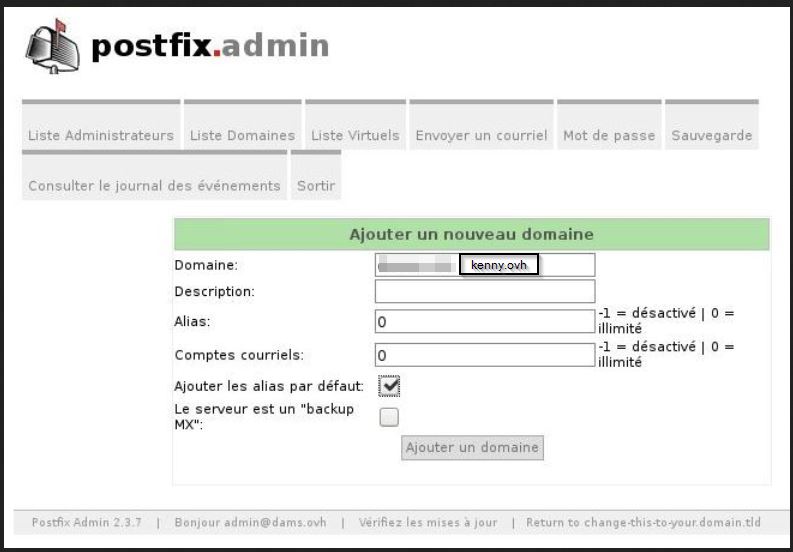 PostfixAdmin est une interface web qui permet de gérer simplement vos domaines, vos adresses virtuelles ainsi que vos alias. Dès que vous aurez besoin d'une nouvelle adresse email, c'est par cette interface qu'il faudra passer.