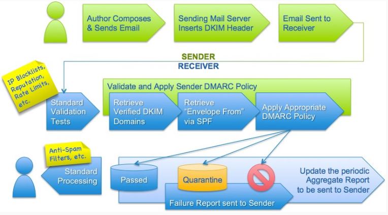 En fait ce mécanisme utilise DKIM et SPF et permet d'informer les autres fournisseurs de mail des actions à entreprendre lorsqu'ils reçoivent un mail provenant de notre domaine. C'est peut-être pas très clair dit comme ça, mais c'est pas compliqué, prenons un exemple :