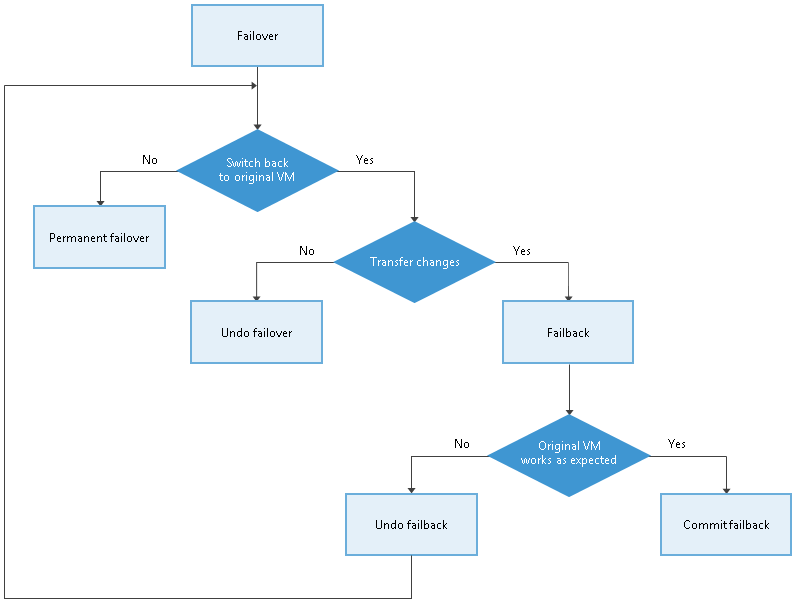 Undo Failover : la VM réplica est éteinte, et toutes les modifications apportées durant son fonctionnement sont supprimées.